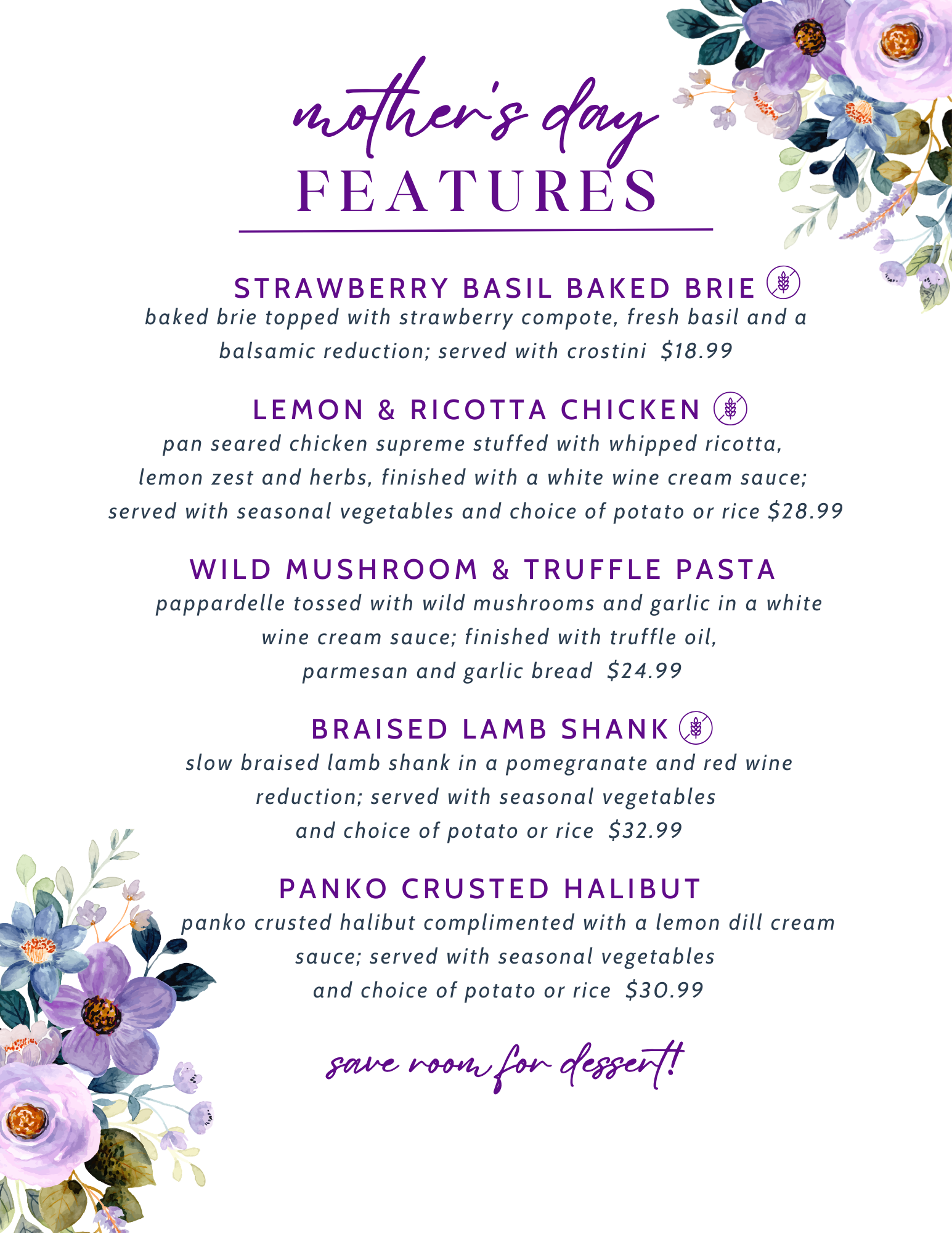 Option 2 - Dinner features available starting at 4pm
